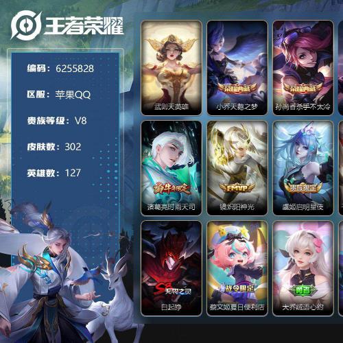 【V8 荣耀黄金 英雄数量:127 皮肤数量:302 荣耀典藏:3个 星传说:1个 传说皮肤:10个 稀有限定:7个 皮肤价值:228836】苹果Q-V8-荣耀黄金II段位-127英雄-302皮肤-2典藏-0珍品无双-0无双-0珍品传说-10传说-80史诗 【英雄全皮】:蒙恬全皮,影全皮 【荣耀典藏】:武则天英雄,小乔天